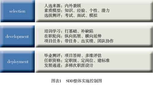 为解决以上难题,东亚银行革新了管培生(即雏鹰人才)的选拔源头,主要面向本行内具有3年以下工作经验的高潜质年轻员工,遵循SDD(selection、development、deployment)人才培养路线(见图表1),为企业培养基础性人才。