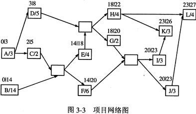 在项目管理中,关键路径是指网络终端元素的元素序列,该序列具有最长的总工期并决定了整个项目的最短完成时间。绘制其项目网络图如图3-2所示。