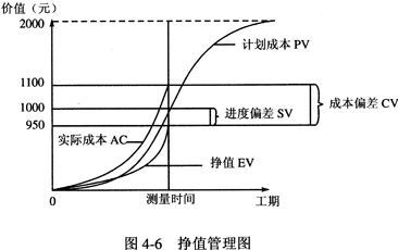 挣值管理(EarnedValue Management),是一种综合了范围、进度计划、资源和项目绩效度量的方法,它通过对计划完成的工作、实际挣得的收益、实际花费的成本进行比较,以确定成本与进度是否按计划进行,提供分析、决策依据,从而选取不同的应对措施,以保证最终完成项目目标。