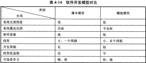 而从系统质量方面来考虑,当然是一次规划,一次性开发更好,因为这种开发模式的统筹性工作将比较螺旋模型会做得更好。传统的瀑布模型需要我们花费大量的精力来做需求分析,要求需求分析做得深入、彻底,以减少软件系统的变更。但由于传统瀑布模型的开发周期长,一次性投资大,投资风险也大,建设单位往往很难接受,软件产品开发商也很难接受,这就导致传统的瀑布模型在市场竞争方面输于螺旋模型。