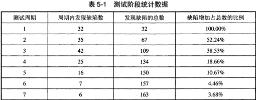 (3)在测试过程中,每三天定义为一个测试周期,统计每个测试周期每个模块发现的缺陷数量。若连续两个测试周期没有发现的缺陷少于总缺陷的5%且发现缺陷的趋势基本平稳,则认为测试工作基本完成。
