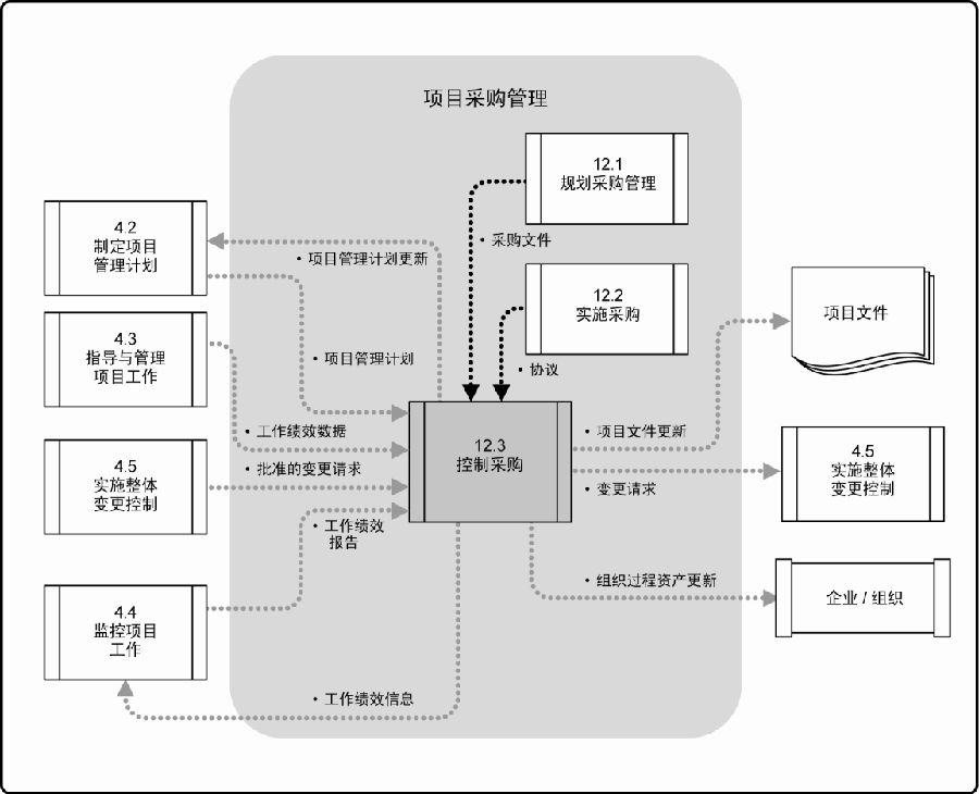 控制采购是管理采购关系、监督合同执行情况,并根据需要实施变更和采取纠正措施的过程。本过程的主要作用是,确保买卖双方履行法律协议,满足采购需求。图12-6描述本过程的输入、工具与技术和输出,图12-7是本过程的数据流向图。