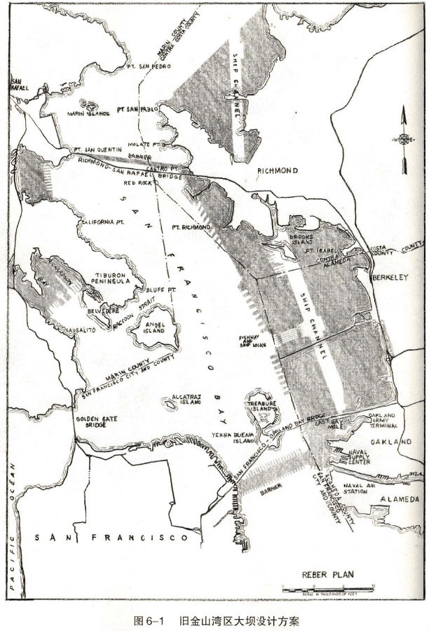 大胆的计划并非只有政治领袖或政府的科学家才能做出来。20世纪40年代后期,一个名叫约翰·雷伯的加利福尼亚人设想对整个旧金山湾区的自然地理进行改造。雷伯是一名老师、一个业余戏剧制作人、一个自学成才的工程师。他并不在意自己没有文凭,公开提议要在湾区建两个大坝,两个蓄水的淡水湖,以供饮水和灌溉.还要开拓两万英亩的土地以供发展。虽然他并没有权势,但人们仍是以严肃的态度对待雷伯的计划。他的计划得到了加利福尼亚报纸编辑委员会的支持。美国国会为计划的可实施性举行了一个听证会。陆军工程兵甚至在索萨利托一个洞穴状的仓库里建造了一个1.5英亩的湾区模型,进行实验。结果证明技术存在缺陷,所以计划作罢。