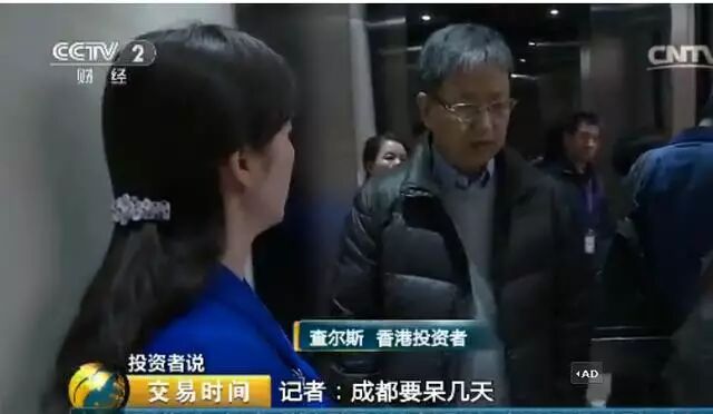 香港投资者 查尔斯:因为这个账一定要还的,没有道理,那个不符合逻辑对不对?为什么编一个故事就把市盈率搞得几百倍,那个怎么来做,就不停的在编故事,在套,在重组。监管来说,股民参与者来说,还有我们的法制来说,都有很长的路要走。而且我觉得应该是大家走快一点。