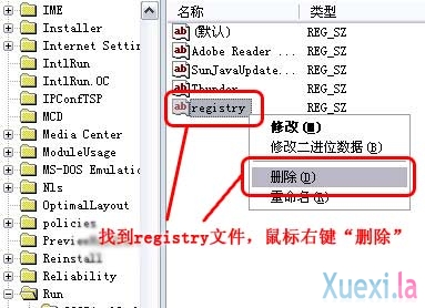 | ——解决办法:根据第一步的方法打开注册表编辑器,并依次找到 HKEY_LOCAL_MACHINE\Software\ Microsoft\Windows\Current Version\Run,将右边的registry.exe文件删除,关闭注册表编辑器后在打开“我的电脑”,在C盘里打开Program Files文件夹,找到registry.exe并删除。最后在浏览器的“工具”菜单里打开“Internet 选项”点击“使用空白页”按钮后点“确定”完成。 |