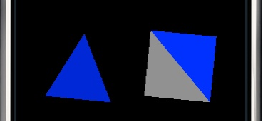 三角形的渲染是正常的。做为一个平面颜色,着色并不会影响三角形的绘制。在来看看矩形,你现在可以清楚的看到OpenGL是用两个三角形来组成一个矩形的。 由于平面着色模式,只使用OpenGL的最后肤色填补每一个三角形,那就是squareColours [ 2 ] (蓝色)和squareColours [ 3 ] (灰色) 。如果你不能确定组成矩形的两个三角形的最后顶点是那个,你可以查阅原来的教程。