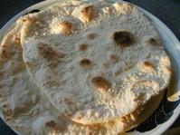 然后用手捏成薄薄的、圆圆的一片,放在平底锅上烤,三五分钟过后,一张色香味俱全的烙饼便告成功了。